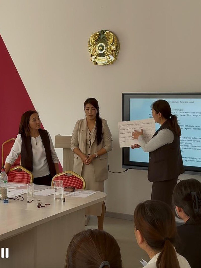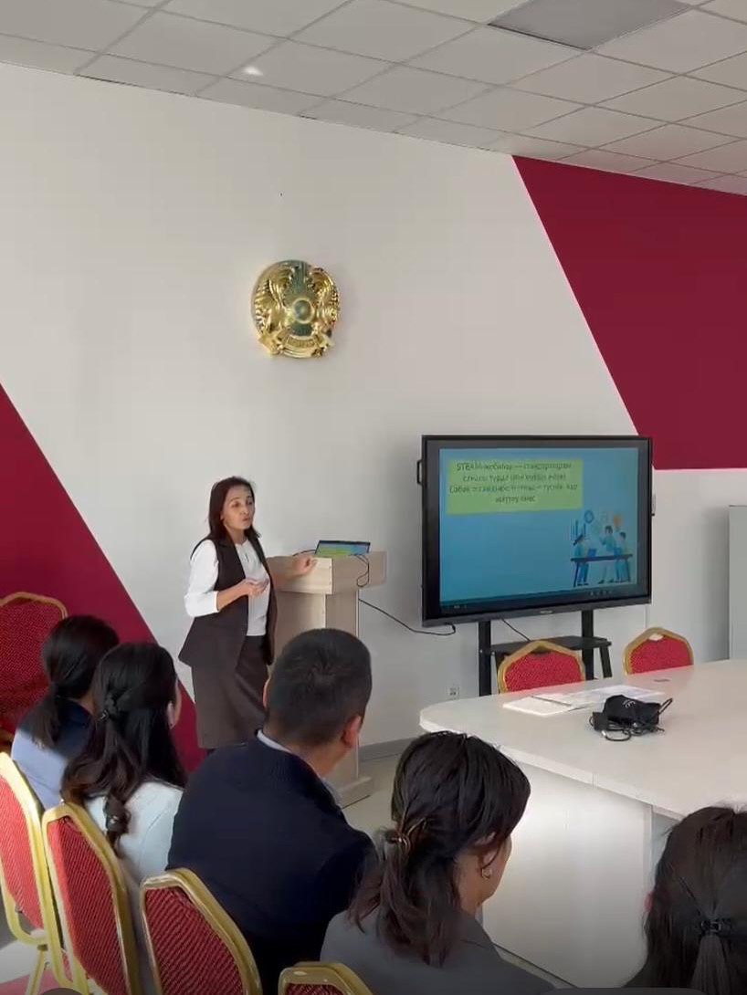 Оңтүстік Корея, Жапония және Сингапур мемлекеттерінде халықаралық тағылымдамадан өтіп келген физика пәні мұғалімі Ақмарал Қалтайқызы «STEAM білім беруді жүзеге асыруда сабақтарда 5E модулін қолдану» атты тренинг сабағын өтті