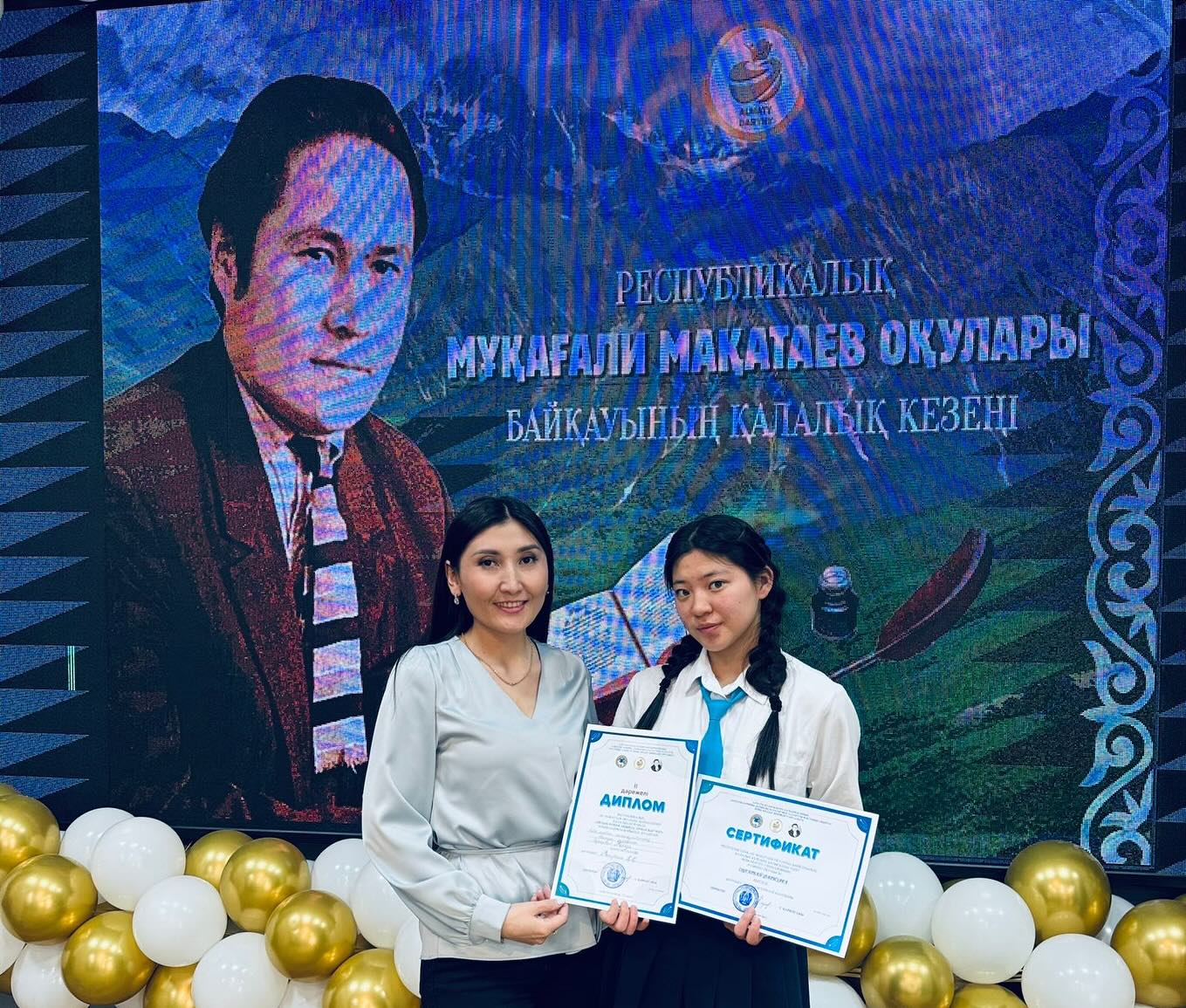 Республикалық Мұқағали оқуының қалалық кезеңінде “ Айтып өткен ақында арман бар ма?” бағыты бойынша 10-сынып оқушысы Оңғарбай Фариза ІІ орынмен марапатталды.